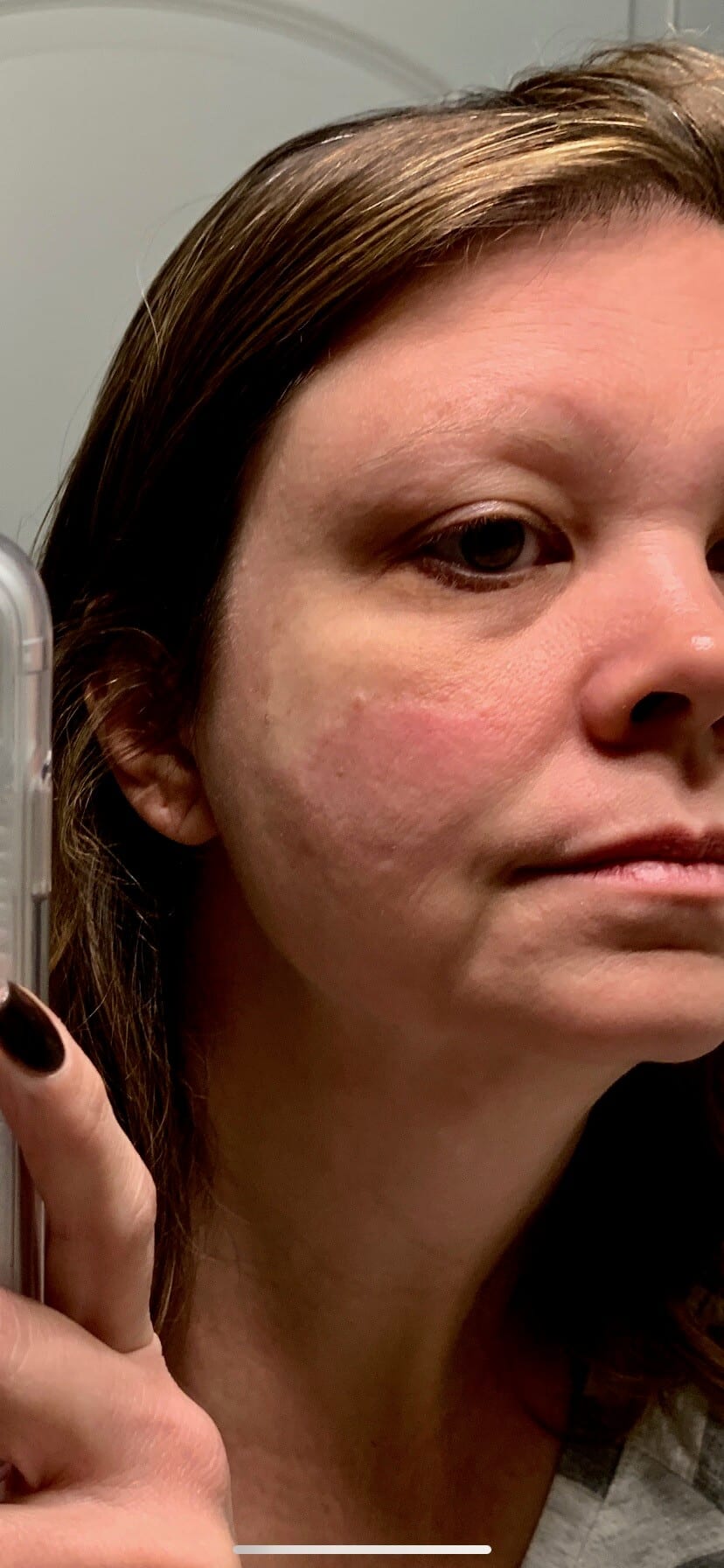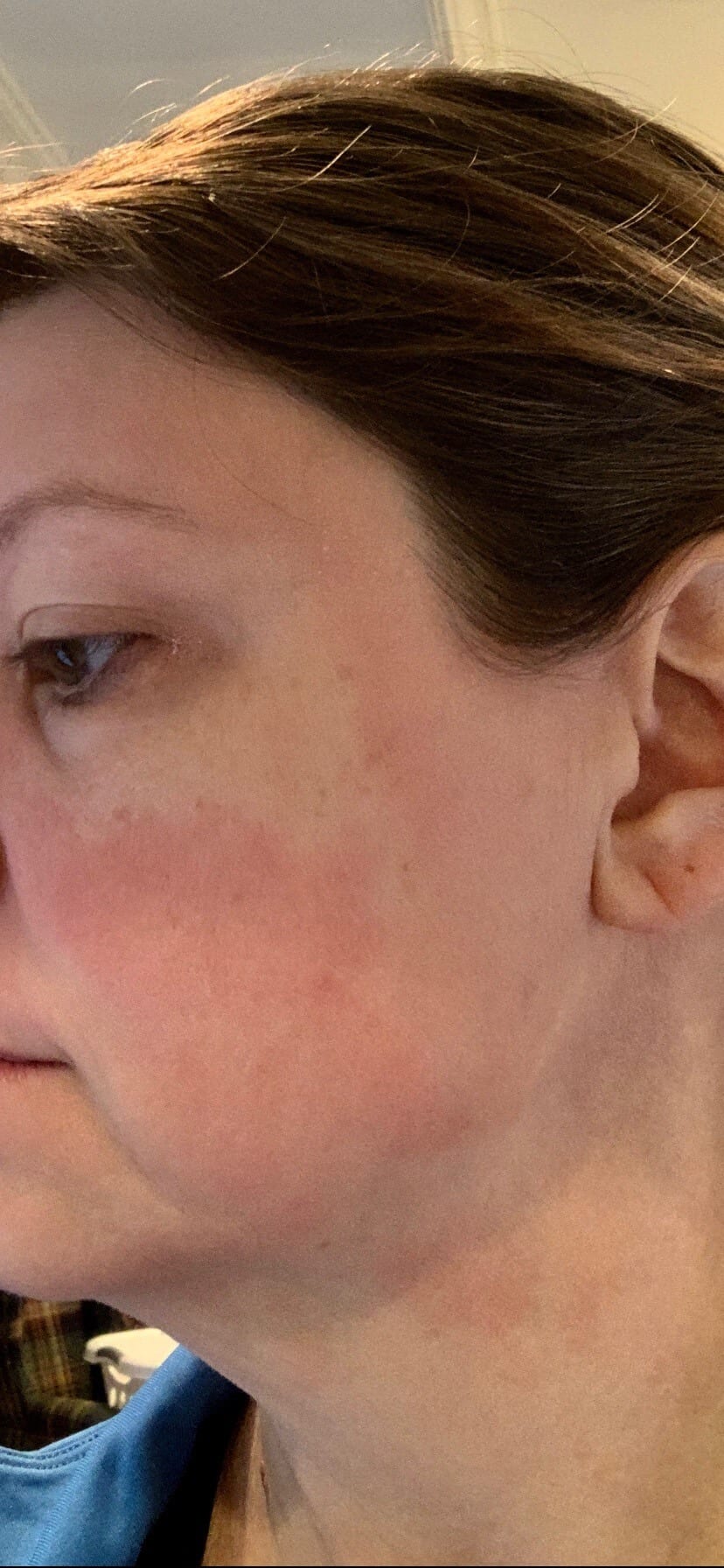 After cleaning up my diet, these symptoms are gone (and my hair is growing back!!! YES!). My fragrance allergies cause me to be very hypersensitive about my environments. When I come in contact with someone elseʼs perfume or shampoo or aftershave, I begin to cough and my breathing gets shallow. I begin to itch. Itʼs miserable. I have these same reactions when I visit stores using essential oil diffusers or friendʼs homes fragranced with candles. You can see some pictures of my reactions over the years.